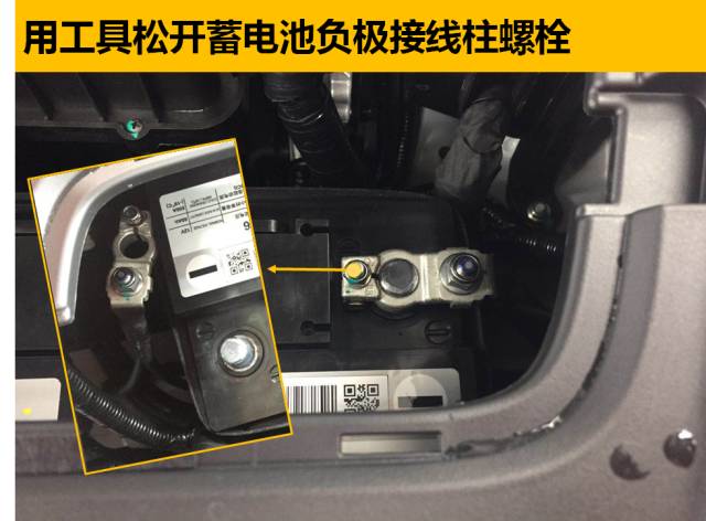 注意:將松開的負極連接線固定位置,避免因為其他不確定因素導致連接線觸碰到接線柱使蓄電池繼續耗電;工具使用M10套筒或者扳手。